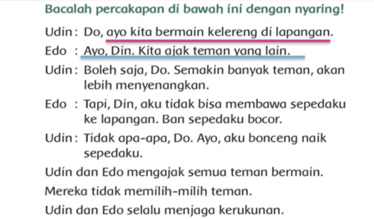 1. Dari kalimat yang bergaris pink dan biru, manakah yang merupakan kalimat ajakan?